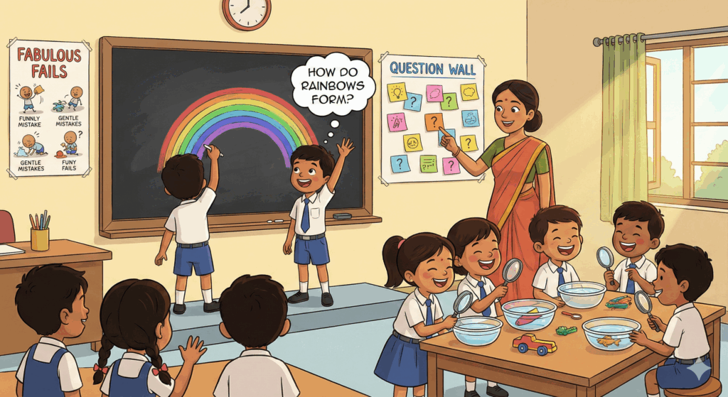 A teacher in a grade 3 classroom asks, âWhat are the colours in a rainbow?â. A student answers VIBGYOR and gets a round of applause from the class. Another student-labelled naughty and distracted in todayâs classrooms-raises a different question, âHow are rainbows formed? The answer he gets is a quick dismissal.